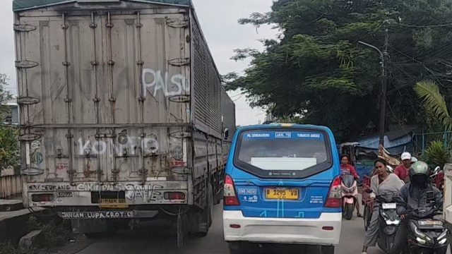 Truk Parkir di Badan Jalan Peternakan sebabkan Kemacetan Hingga Jalan Daan Mogot