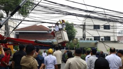 JAKARTA, detikfaktual.com- Guna mendukung terciptanya suasana kota yang indah, Pemerintah Kota (Pemkot) Administrasi Jakarta Pusat melalui Sudin Bina Marga melaksanakan penurunan kabel fiber optik yang berlokasi di sepanjang Jalan HOS Cokroaminoto, Kecamatan Menteng, Rabu (15/10).