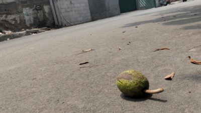 Rianti (45), warga Kapuk Pulo yang hampir setiap hari melintas di jalan tersebut, mengaku sempat nyaris tertimpa buah sukun yang jatuh di depannya secara tiba-tiba.
