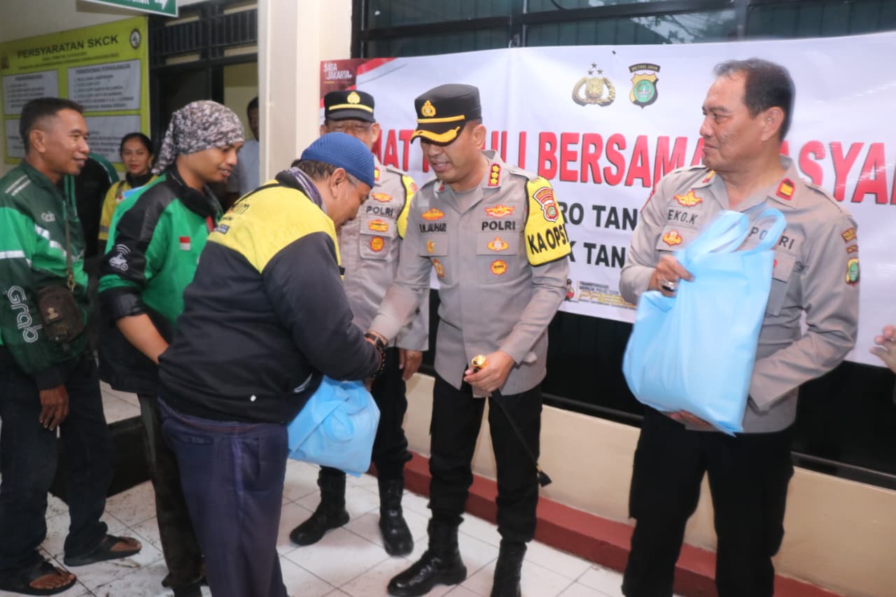 Kegiatan yang dimulai pukul 16.00 WIB itu dipimpin langsung oleh Kapolres Metro Tangerang Kota Kombes Pol Dr. Raden Muhammad Jauhari, S.H., S.I.K., M.Si. dan dihadiri sejumlah pejabat utama Polres. Dalam kesempatan tersebut, Kapolres menyerahkan secara simbolis 100 paket sembako kepada para pengemudi ojek online (ojol) yang beroperasi di wilayah Kota Tangerang.