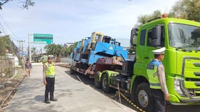 sejumlah petugas melakukan proses penanganan dan rekayasa lalu lintas untuk mengurai kemacetan