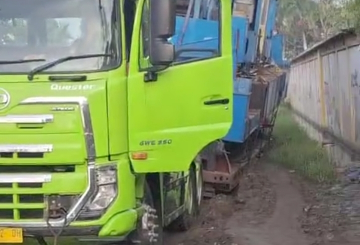 Sebelumnya, beredar video di media sosial yang memperlihatkan sebuah truk besar berwarna hijau amblas di sela-sela proyek betonisasi Jalan Selembaran Raya.