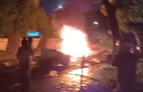 Ketegangan berlanjut pada malam harinya ketika sekelompok orang yang diduga rekan korban mendatangi lokasi dan melakukan aksi balasan. Massa merusak sejumlah warung di sekitar tempat kejadian dan membakar satu unit sepeda motor.