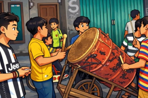 Ilustrasi remaja bangunkan sahur keliling